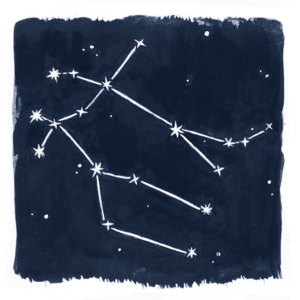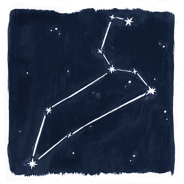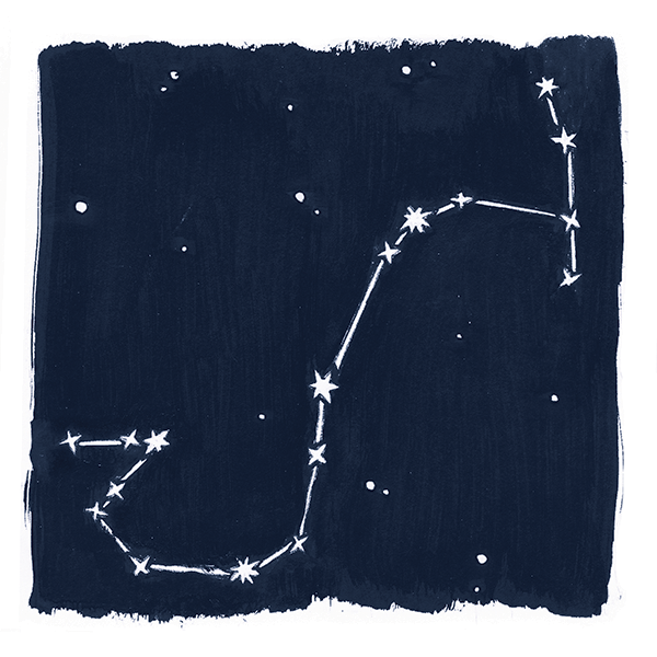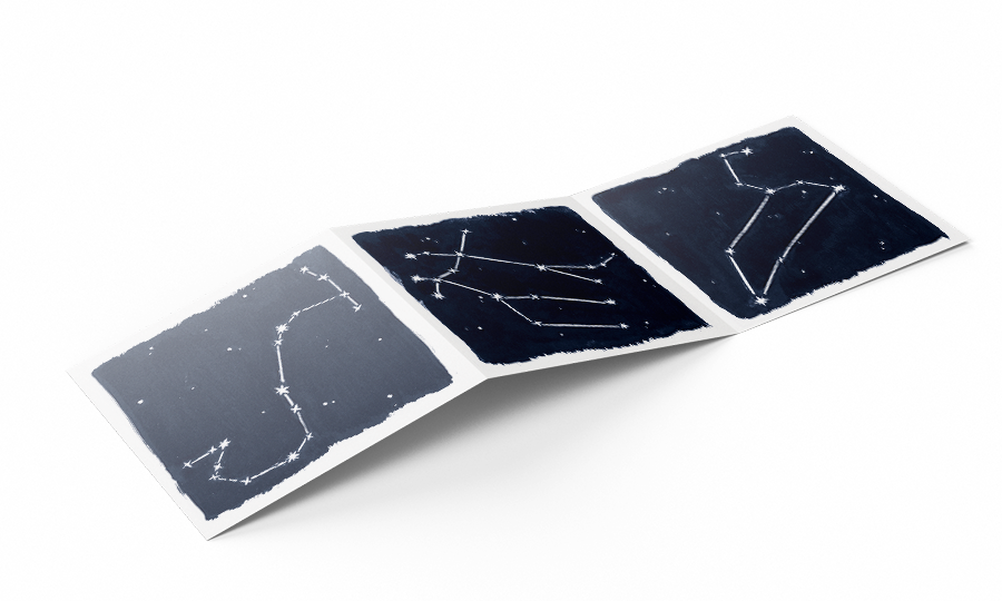 Stars and Stationary began as a commission for a small painting of the constellation Aries and expanded into a series of other well-known stars and constellations. They were all bound together as an accordion-fold 12-month calendar.