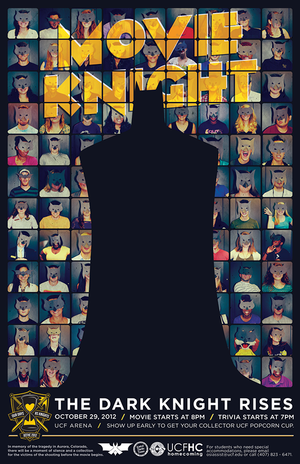 To incorporate UCF’s 2012 Homecoming theme, Our Days As Knights, students were photographed wearing Dark Knight masks and were incorporated into the event's poster.